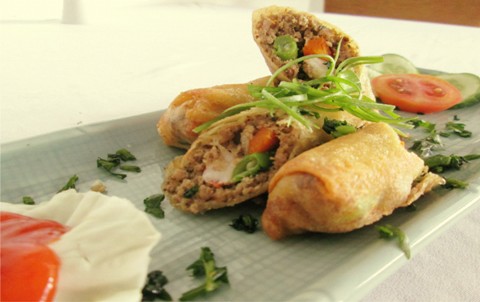 Daging sapi yang dibungkus dengan kulit lumpia dilengkapi isi sayuran yang segar